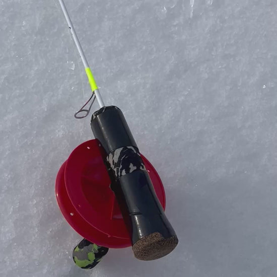 The Schooley Stick ice fishing rod is a purpose-built finesse rod designed for anglers who demand maximum control, sensitivity, and precision in close-quarters ice fishing.